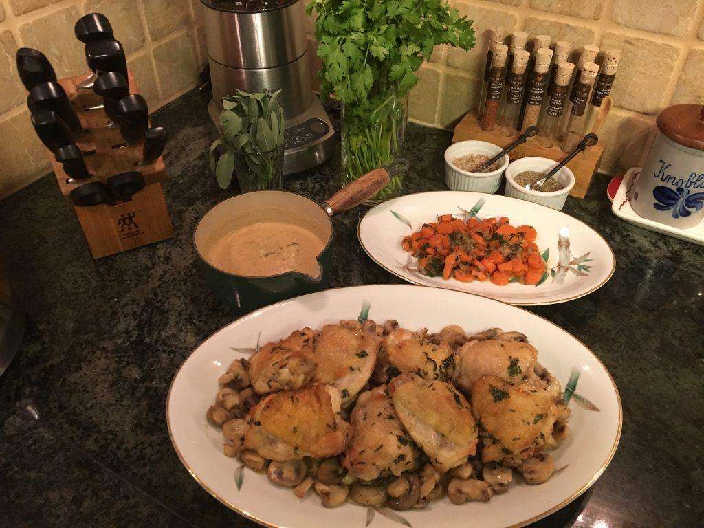 I found this recipe from Emeril Lagasse on the Food Network. It is delicious and surprisingly light. Emeril recommends serving this dish over Spaetzle. I served it over egg noodles. However, if you prefer to make Spaetzle, click on that link for my recipe already published.