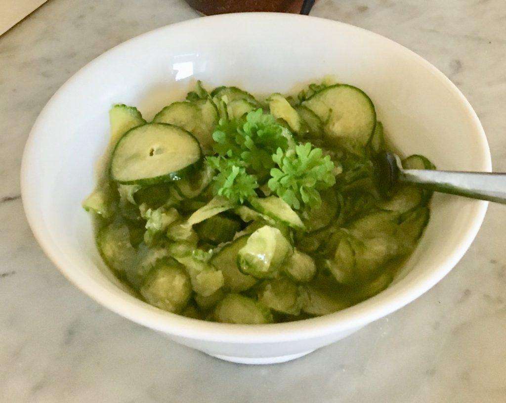 You have been reading for a few months now about my mother’s “go to” dinner when company was invited to come over. The menu included Grilled Marinated Flank Steak, Baked Rice with Beef Consummé and this recipe for an Asian citrusy salad. The three recipes complement each other well. The sweet and savory steak along with the mushroom rice and this easy salad were always a hit. You can vary these recipes to your liking and your guests will also be impressed.