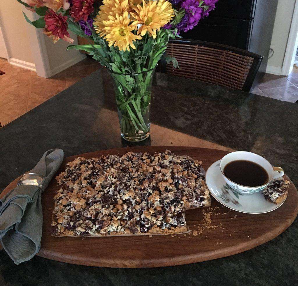 These bars are called a “triple threat” because each layer is good on its own, but the three layers of graham cracker mixture, vanilla buttercream and chocolate ganache hit the ball right out of the park. We learned about the Nanaimo bars while on our first cruise with our boat to British Columbia. The bars are a big deal all over Canada. They are found in most bakeries and for any occasion including high tea and large celebrations.