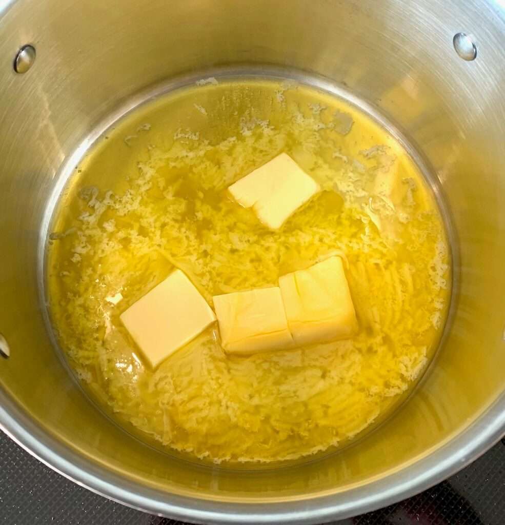 Prepare the bottom layer: In a pan over medium heat, melt the butter.
