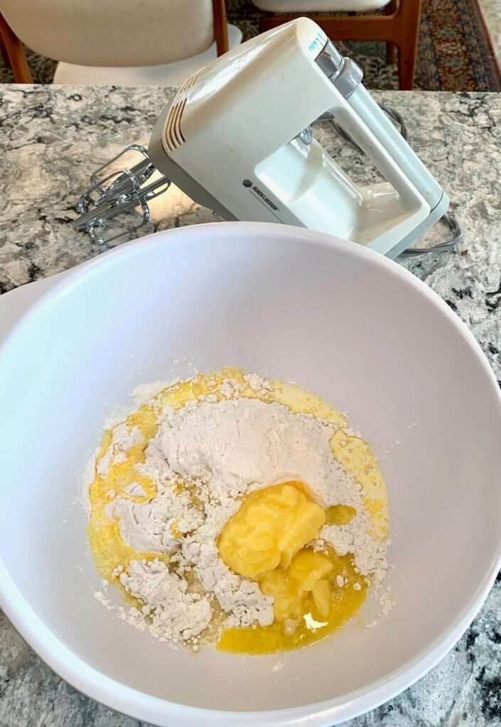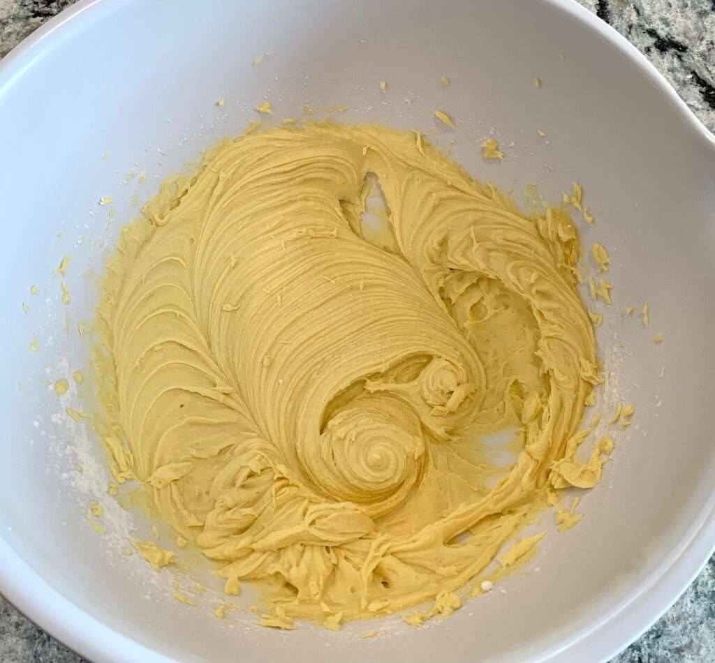 One cup at a time, mix in the powdered sugar. At medium high speed, mix all the ingredients until light and fluffy.